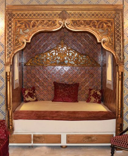 Sur deux niveaux, elle est composée de neuf suites richement décorées, d’un hammam